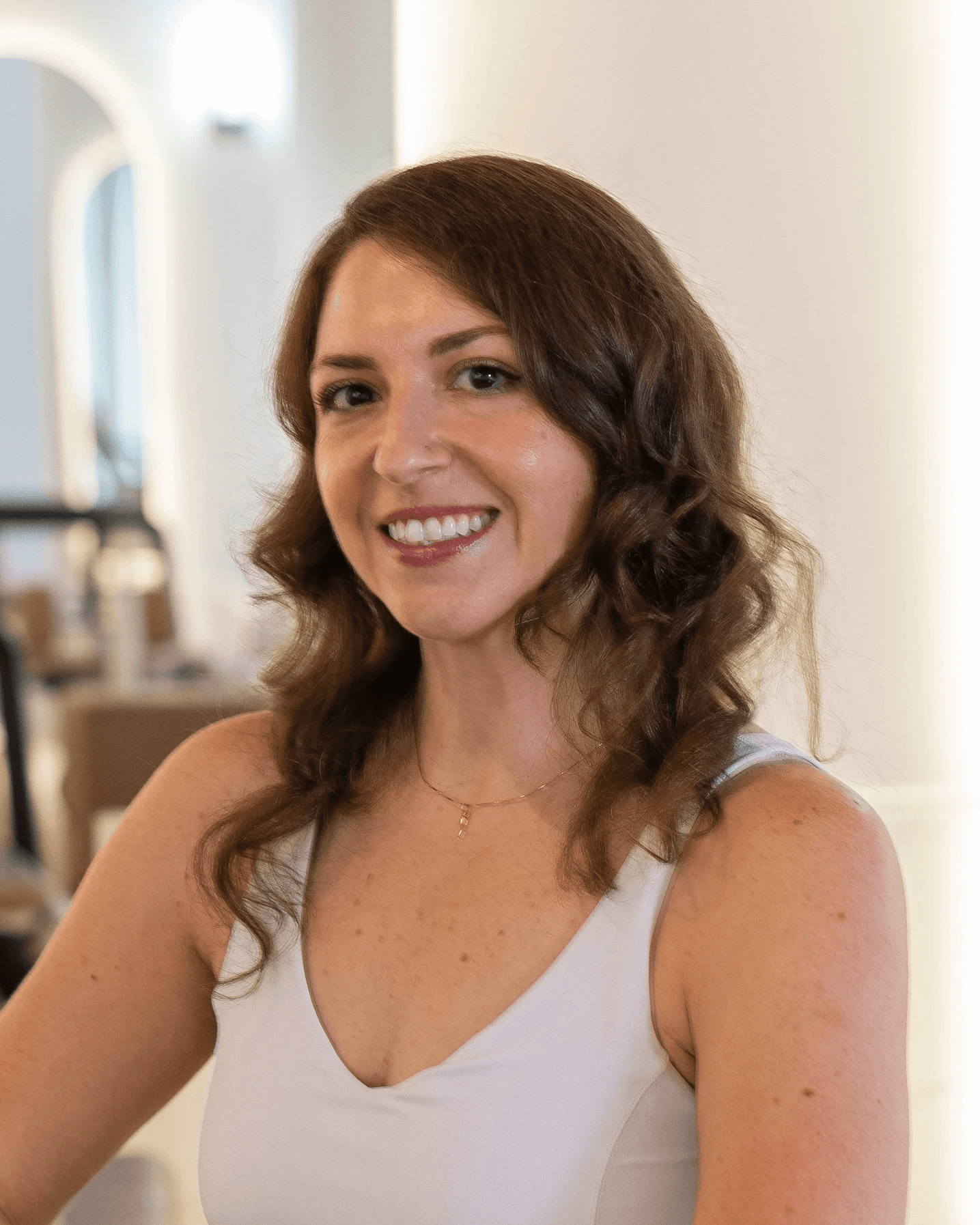 Chelsea is a certified Mat Pilates and Barre instructor who creates classes that are equal parts energizing and supportive. Her teaching blends precise, anatomy-based cueing with a warm, friendly approach that feels like moving with your best friend. Expect playful sequences, sneaky challenges, and intentional strength that leave you feeling both accomplished and deeply cared for.
